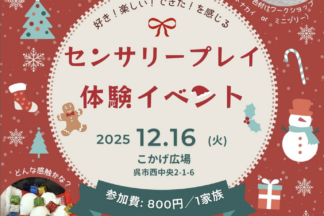| 4月20日(日)〜 インラインスケート教室 in呉ポートピアパーク 10:00 AM 4月20日(日)〜 インラインスケート教室 in呉ポートピアパーク @ 呉ポートピアパーク 12月 14 @ 10:00 AM – 12:00 PM ![]() \アウトドアスクール/ インラインスケート教室が開催されます! 、 (画像をクリックすると大きくみれます) 、 呉ポートピアパークにて インラインスケート教室が開催されます! 、 インストラクターの方に自分のレベルに合った指導をしていただきます! 、 初めての方も、経験者の方もぜひ参加してみませんか♡ 、 ●日程 4月20日(日)・5月11日(日)・6月15日(日)・9月21日(日)・ 10月19日(日)・11月16日(日)・12月14日(日)・2026年3月15日(日) ※ 9月21日(日)まで申し込み受付中 、 ●持ち物 インラインスケート靴・プロテクター・ヘルメット 手袋(冬季の防寒用)、長めの靴下 スケート靴貸し出しあり(400円)※要事前申し込み。サイズ・数に限りがあります。 、 、 【日時】4月20日(日)・5月11日(日)・6月15日(日)・9月21日(日)・ 10月19日(日)・11月16日(日)・12月14日(日)・2026年3月15日(日) ※ 9月21日(日)まで申し込み受付中 10:00~12:00 ※小雨決行 【場所】呉ポートピアパーク 呉市天応大浜3-2-3 (Googlemapへ) 【参加費】700円(当日・現金のみ) スケート靴貸し出しあり(400円) ※要事前申し込み。 ※サイズ・数に限りがあります。 【定員】30名 【対象】5歳以上 【お申し込み】お申し込みフォーム 【お問い合わせ】 呉ポートピアパーク HP @kureportopiapark ☎︎0823-38-0560 | 12月16日(火)センサリープレイ体験イベント 1:15 PM 12月16日(火)センサリープレイ体験イベント @ こかげ広場 12月 16 @ 1:15 PM – 2:30 PM ![]() \好き!楽しい!できた!を感じる/ センサリープレイ体験イベントが開催されます! 、 (画像をクリックすると大きくみれます) 、 こかげ広場にてセンサリープレイ体験イベントが開催されますよ! 、 ⚫︎センサリープレイって? センサリープレイは、様々な素材・ツール・装飾で多感覚を刺激して脳とカラダの発達を促す海外発のあそびプログラムです。 テーマや季節に合わせた世界感に子どもは夢中になります♪ 、 センサリープレイの体験とオーナメントに色付けをするワークショップもあります! 、 親子でクリスマス気分を楽しみながら、好き!楽しい!を存分に感じられる感覚遊びを体験してみませんか♡ 、 、 【日時】12月16日(火) 13:15開始〜14:30終了(13:00〜入場可) 【場所】KOKAGEBUILDING1階 こかげ広場 呉市西中央二丁目1番6号 (Googlemapへ) ※駐車場はありません。近隣の有料駐車場をご利用ください。 【料金】800円 【定員】先着5家族 ※満席により受付終了:今後のイベントはInstagramをチェック 【対象】1歳半〜未就学児 【お申し込み】お申し込みフォームはコチラ 【お問い合わせ】 @sensory_play_planer_kei | 12月20日(土)呉ナザレン教会 こどもクリスマス会 1:30 PM 12月20日(土)呉ナザレン教会 こどもクリスマス会 @ 呉ナザレン教会 12月 20 @ 1:30 PM – 2:30 PM ![]() \大人も子どももみんなでクリスマスを楽しもう/ 呉ナザレン教会 こどもクリスマス会 が開催されます♪ 、 、 ステンドグラスのある教会でクリスマスを過ごしてみませんか? 、 クリスマスのお話や歌、ゲームなどをみんなで楽しみますよ! 、 お菓子のプレゼントもあるそうなので、大人も子どももみんなで過ごしませんか? 、 、 【日時】12月20日(土) 13:30〜14:30 【場所】 呉ナザレン教会 呉市中央2-4-14(Googlemapへ) 【料金】無料 【お問い合わせ】 呉ナザレン教会 ☎︎0823-21-8747 呉ナザレン教会Instagram 呉ナザレン教会HP | ||||