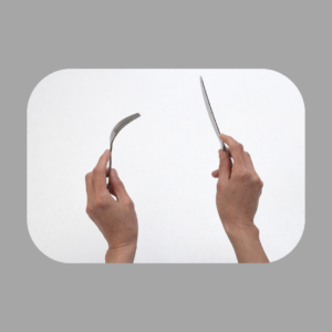 この形にすると、料理を押さえやすく、ナイフも安定して食材を切りやすくなります。