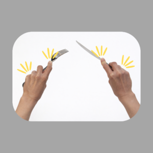 また、フォークやナイフを振り上げたり、刃先や先端を相手に向けたりしないように心がけましょう。