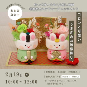【くれえばんママカレッジ】2/19(木) コロンと可愛い うさぎのお雛様飾り