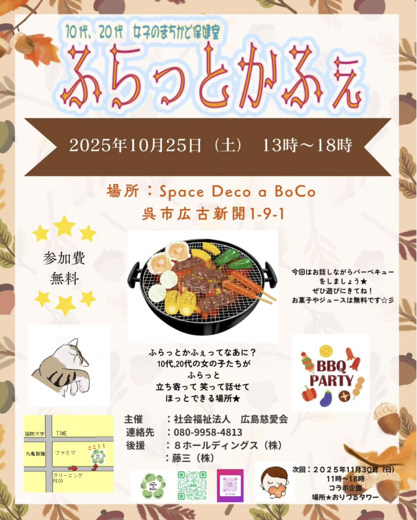ふらっとかふぇとは10代・20代の女の子たちがふらっと立ち寄ってお話をしてほっとする場所です!
