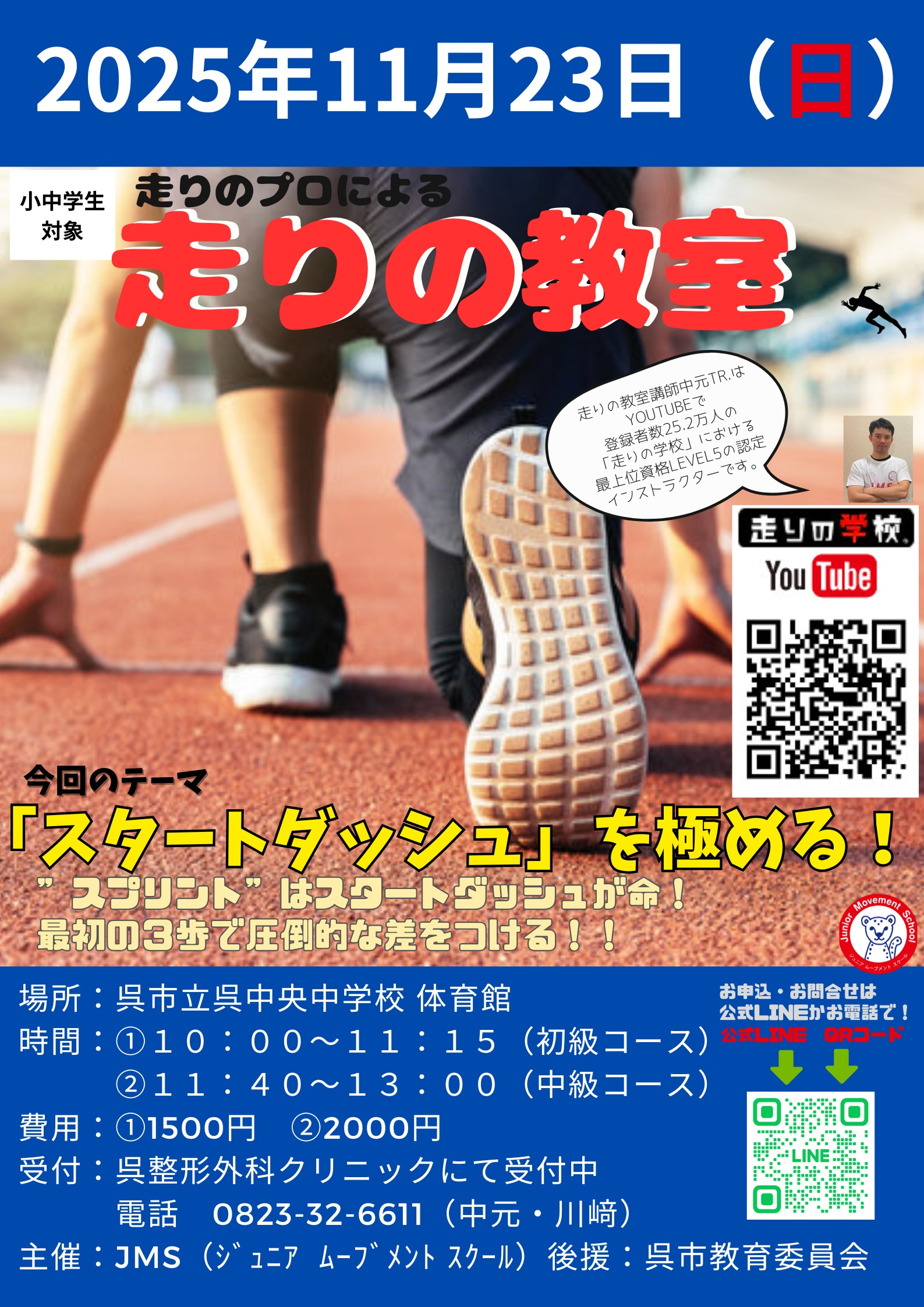 呉市立呉中央中学校にて小中学生を対象に走りの教室が開催されます!