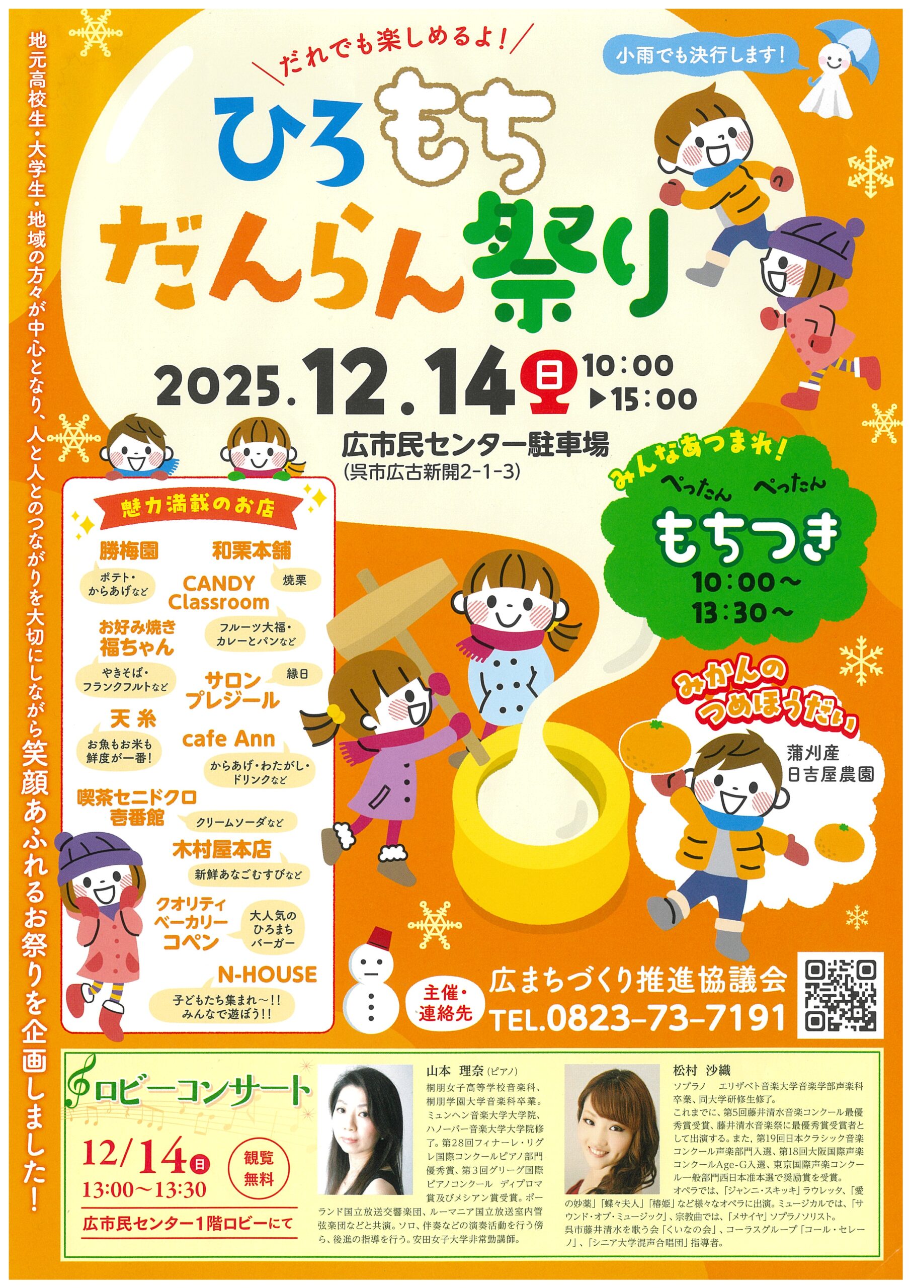 日本の伝統文化である「餅つき」を子ども達に継承するとともに、広町から人と人の繋がりを生み出す、ひろ「もち」だんらん祭がありますよ♪