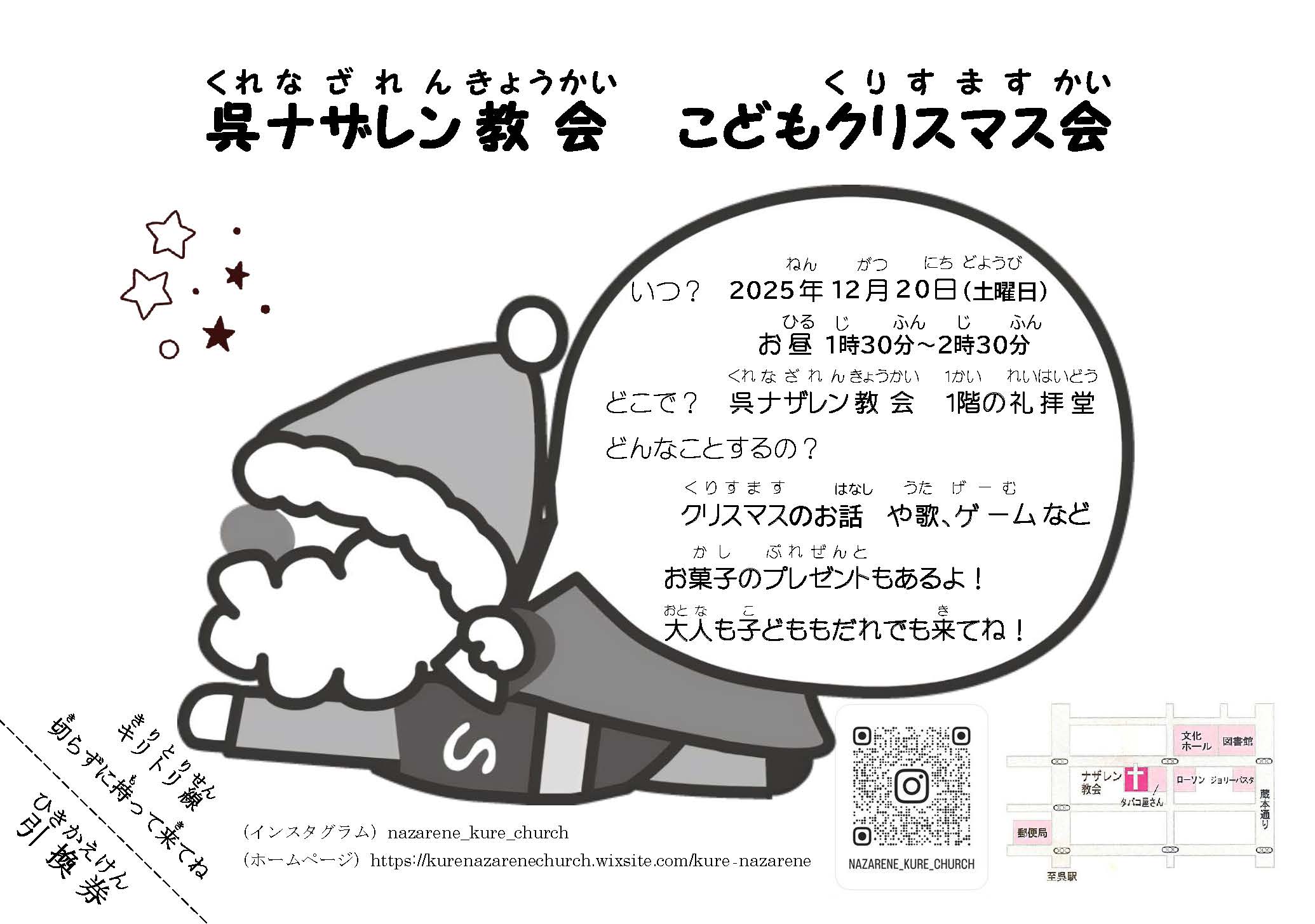 呉ナザレン教会 こどもクリスマス会 が開催されます♪