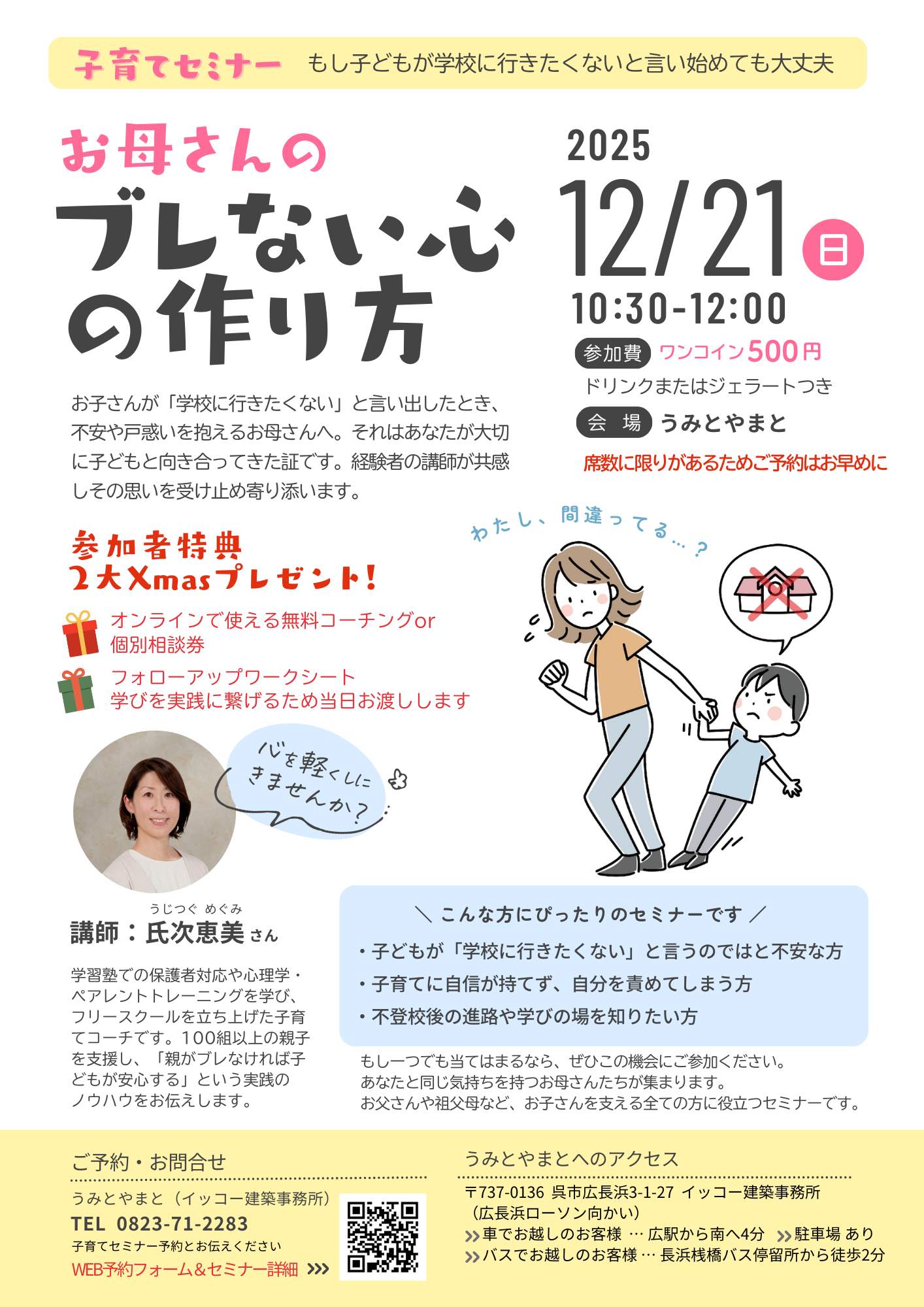 うみとやまとにてお母さんのブレない心の作り方のセミナーが開催されます。