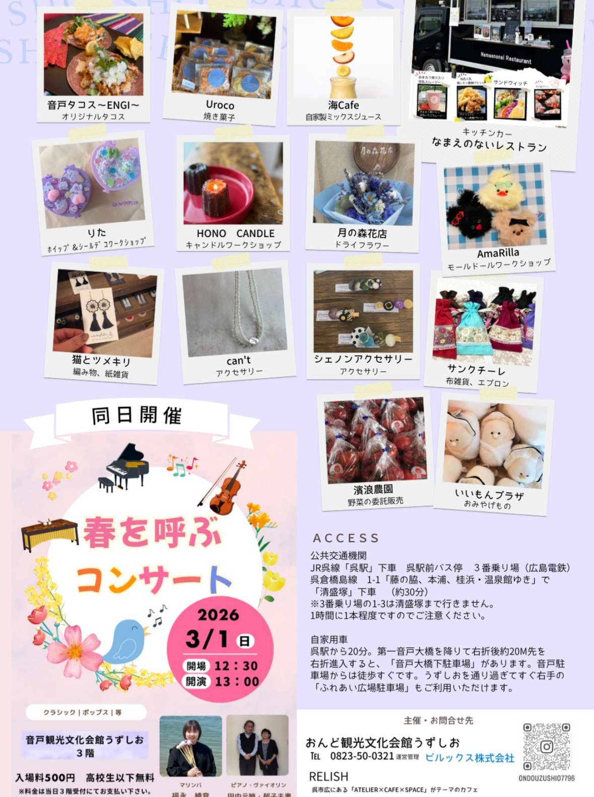 2026年3月1日(日)ハンドメイドマルシェ「marche du Relish 6〜海辺の音戸〜」