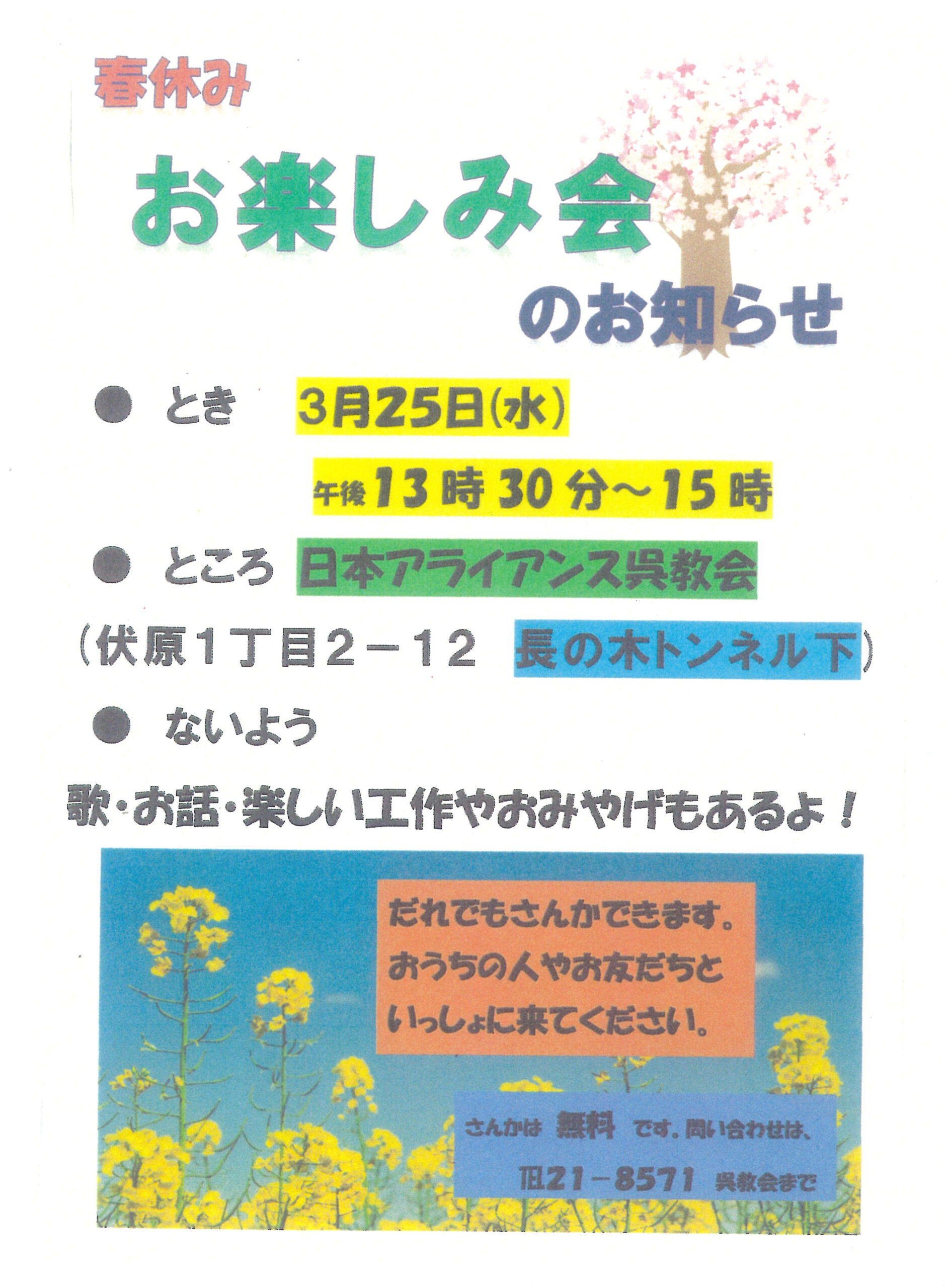 2026年3月25日(水) 春休み子どもお楽しみ会