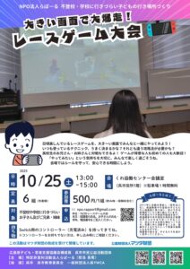 不登校や学校に行きづらいお子さん及びご兄弟・姉妹さん対象にレースゲーム大会が開催されますよ!