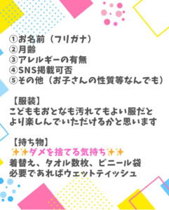 【申し込み】インスタグラムのDMにて下記の項目を書いて申し込みください。