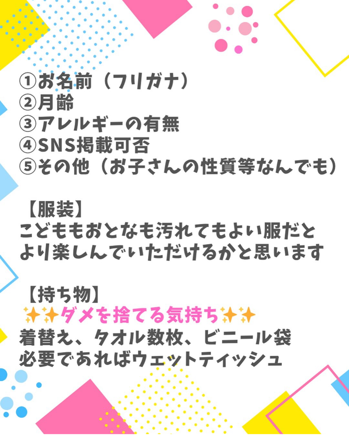 こどももおとなも汚れてもよい服だとより楽しめますよ。