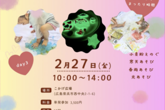 | 2026年1月11日(日)いぬねこ譲渡会 11:00 AM 2026年1月11日(日)いぬねこ譲渡会 @ 呉市動物愛護センター 1月 11 @ 11:00 AM – 2:00 PM ![]() \保護ネコちゃんワンちゃんと暮らそう/ いぬねこ譲渡会 が開催されます! 、 (画像をクリックすると大きくみれます) 、 呉市動物愛護センターにていぬねこ譲渡会が開催されます! 、 保護猫犬を家族に♡毎日一緒遊んだり生活してみたい方♡ 、 可愛いねこちゃんワンちゃんがお待ちしていますよ♡ 、 気になる方はぜひイベントに参加してみませんか♪ 、 ●支援物資のお願い タオル、タオルケット、毛布、敷パッド類(未使用または洗濯済み) 犬猫フード、おやつ(いずれも未開封) うんち袋、レジ袋、ティッシュ、ペットシーツ、猫砂、ケージ等 、 の支援物資を募集されているそうです。 自宅でペットを飼うのが難しい方も、支援物資という形で支援する方法もありますよ♪ 、 、 【日時】2026年1月11日(日) 11:00〜14:00 【会場】呉市動物愛護センター 呉市郷原町2380−319 (Googlemapへ) ※駐車場有 【お問合せ】 @halu.mai @nekobugram_1064 ☎︎tel:080-1647-0822 | 1月13日(火)屋内で雪遊び 10:00 AM 1月13日(火)屋内で雪遊び @ 放課後等デイサービスtetto 1月 13 @ 10:00 AM – 12:00 PM ![]() \触って遊ぼう/ 屋内で雪遊びが開催されます! 、 (クリックすると拡大出来ます) 、 子育てルームtettoにて屋内で雪遊びが開催されますよ! 、 本物の雪ではありませんがお部屋の中で雪遊びができます! 、 サラサラな感触や、水を足して固めたり、最後はシュワシュワな感触も体験できます♪ 、 気になる方はぜひお友達と一緒にイベントに参加してみませんか♡ 、 、 【日時】1月13日(火)10:00~12:00 ※時間内出入自由 【場所】放課後等デイサービスtetto 東広島市黒瀬町兼沢105-1 (Googlemapへ) 【料金】500円 【定員】5組 【お申し込み】 お申し込み、お問い合わせは @kosodateroom_tetto へよろしくお願いします! 【お問い合わせ】 @kosodateroom_tetto | 1月14日(水)にこにこ親子ひろば 10:00 AM 1月14日(水)にこにこ親子ひろば @ 川尻まちづくりセンター 1月 14 @ 10:00 AM – 12:00 PM ![]() \お正月がテーマ/ にこにこ親子ひろばが開催されます! 、 (画像をクリックすると大きくみれます) 、 川尻まちづくりセンターに大田笑会さん@ohta_shokai_eventの あんよであそぼがやってきますよ! 、 今回はお正月がテーマ♪ 、 リトミックや足形アート、触れ合い遊びなど、「楽しい」がたくさん♪ 、 お友達・親子でぜひ遊びに行ってみませんか♡ 、 、 【日時】1月14日(水) 10:00〜12:00 【会場】川尻まちづくりセンター 呉市川尻町東1丁目1-21 (Googlemapへ) 【参加費】600円(受講料400円、その他200円) 【対象】0歳~3歳とその保護者 【定員】15組 【お申し込み】川尻まちづくりセンター窓口にて申込受付ています ※締め切り:1月7日(水) 【お問合せ】 ●川尻まちづくりセンター ☎︎0823-87-3311 ●大田笑会 インスタグラム:@ohta_shokai_event | ||||